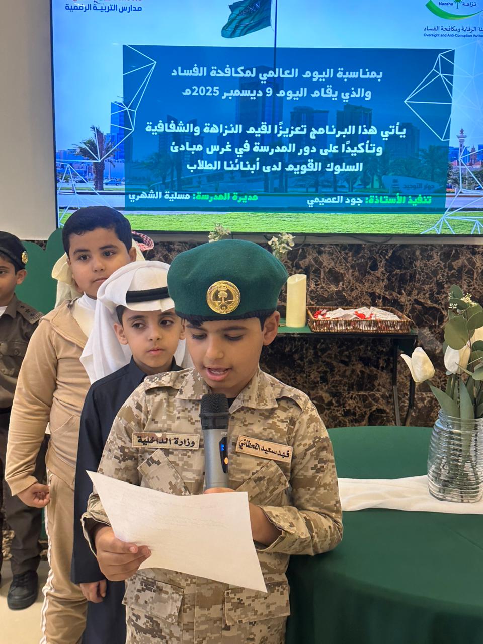 اليوم العالمي لمكافحة الفساد بالشراكة المجتمعية مع ولية أمر الطالب عمر المطيري