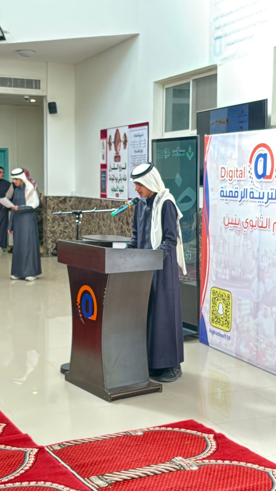 أُقيم في القسم الثانوي - بنين - اليوم العالمي للغة العربية يوم الاثنين الموافق 1447/7/2هـ، وذلك بهدف إبراز مكانة اللغة العربية وتعزيز الاعتزاز بها، حيث اشتمل البرنامج على فقرات متنوعة أسهمت في تنمية المهارات اللغوية لدى الطلاب، وسط تفاعل مميز من منسوبي المدرسة