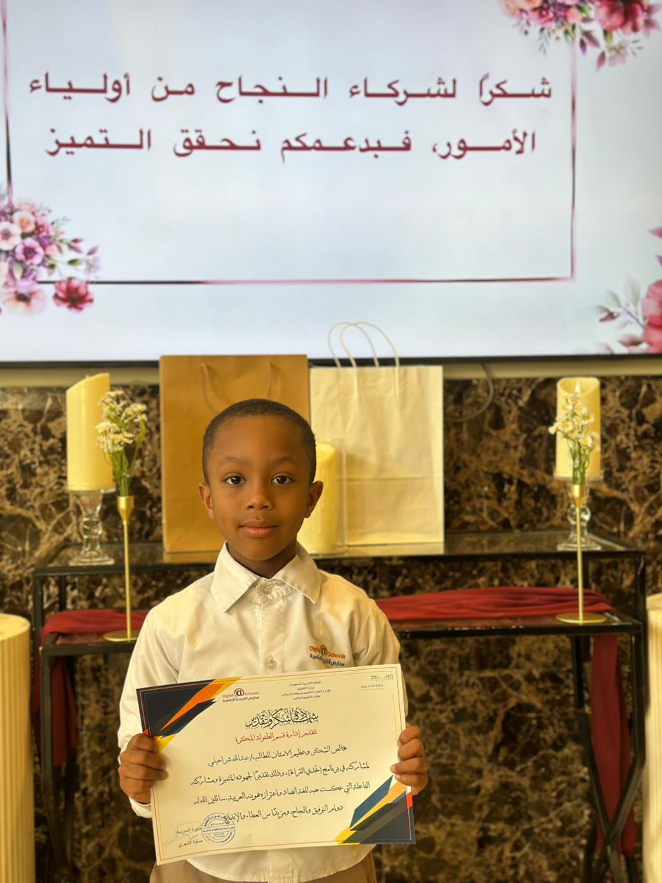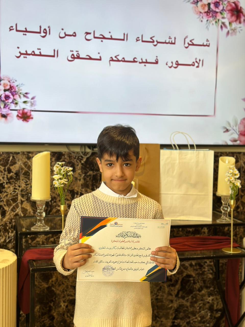 وقد جاء هذا التكريم تقديرًا للجهود المبذولة، ودعمًا للسلوك الإيجابي، وتحفيزًا على الاستمرار في الالتزام والانضباط داخل البيئة التعليمية، وكذلك تشجيعًا للتفاعل الأسري والمجتمعي في الأنشطة التعليمية الهادفة.