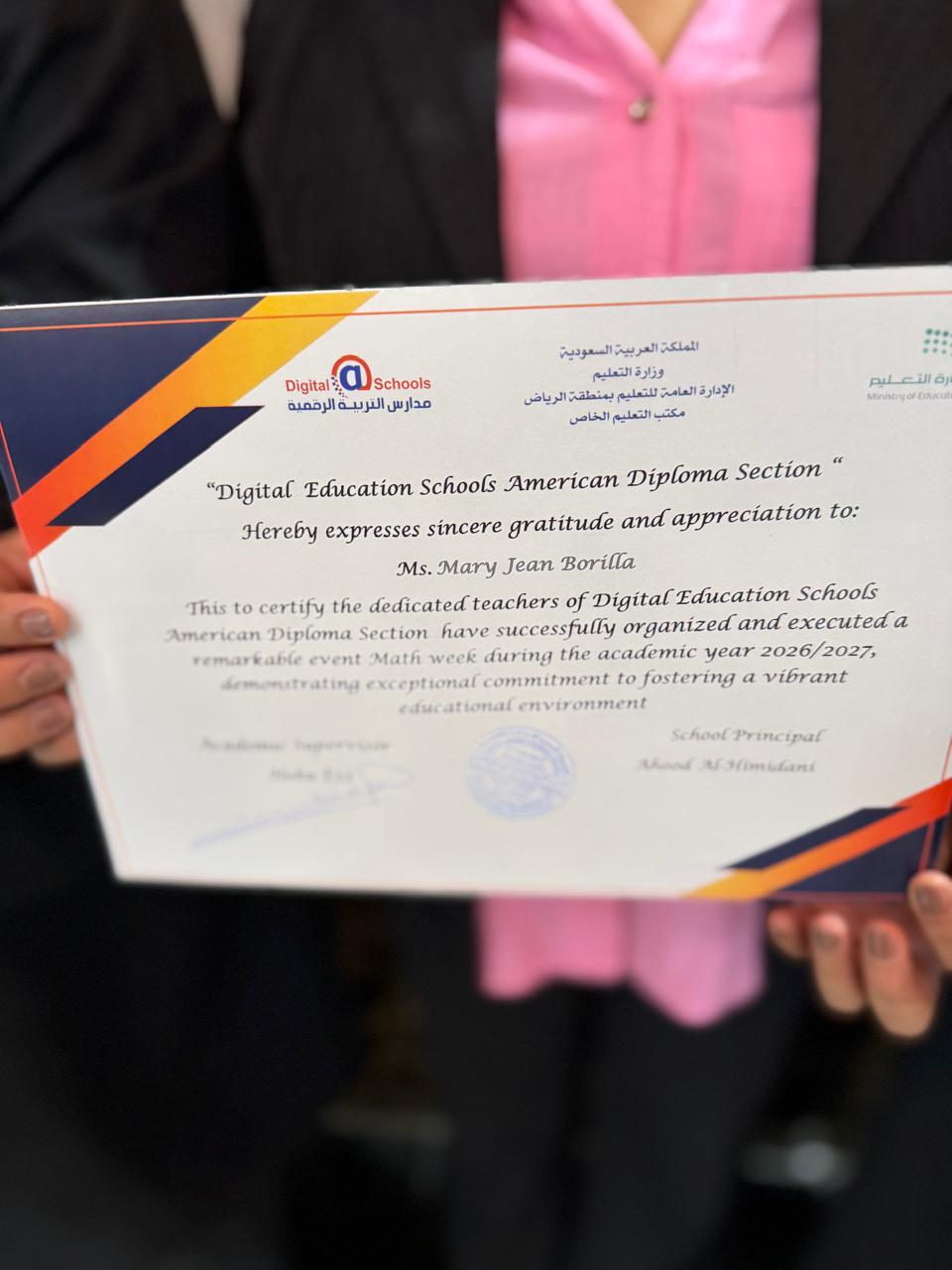 كرمت مدارس التربية الرقمية قسم الدبلوما الأمريكية للبنات المعلمات المشاركات في مسابقة الرياضيات