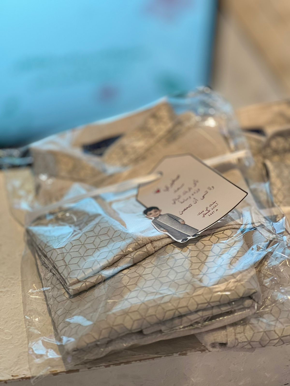 وكأن الفرح يُهدى في هيئة قماشٍ أنيق، يُخبّئ بين طيّاته لحظاتٍ لا تُنسى، أستلمه الأطفال بقلوبٍ مفعمة بالشوق، ترقّبًا ليومٍ يزهو فيه الحلم، وتُزفّ فيه الخطوات الصغيرة نحو بدايةٍ أجمل.