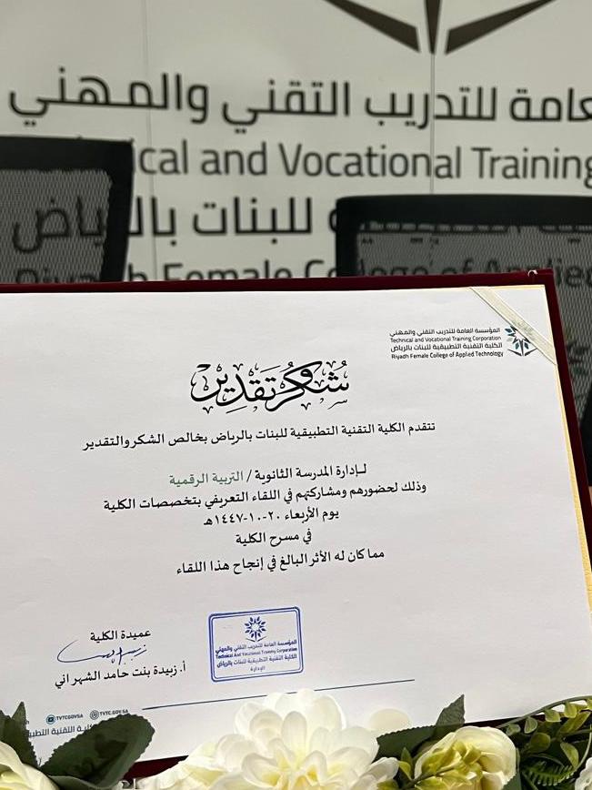 لحضور لقاء تعريفي يهدف إلى التعريف بتخصصات الكلية وبرامجها التدريبية، وما تقدمه من خدمات تدريبية ومهنية تسهم في تمكين الطالبات من اختيار المسار المناسب لمستقبلهن الأكاديمي والمهني.