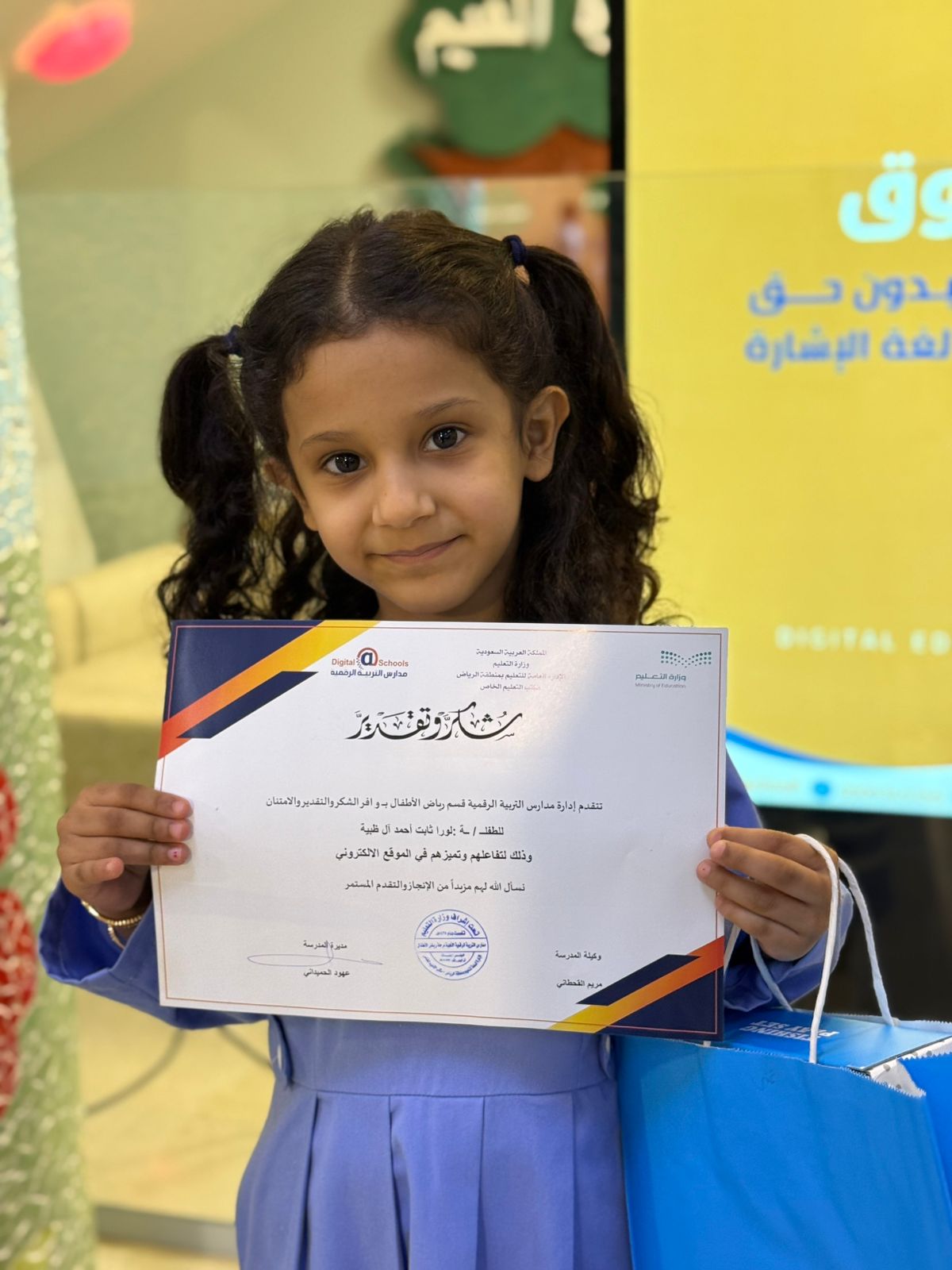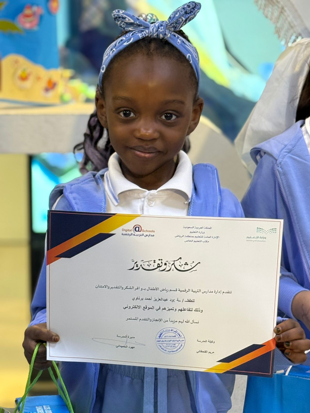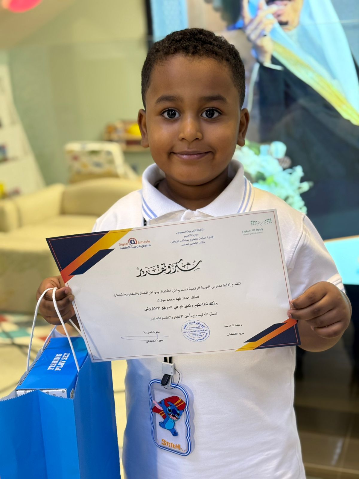 كرمت مدارس التربيه الرقمية قسم رياض الأطفال يوم الأثنين الموافق7 / 4 / 1447هـ الأطفال على جهودهم المتميزة في الدخول إلى الموقع الإلكتروني الخاص بالمدارس. ويأتي هذا التكريم تقديرًا لالتزامهم وتعاونهم، وتشجيعًا لهم على الاستمرار..