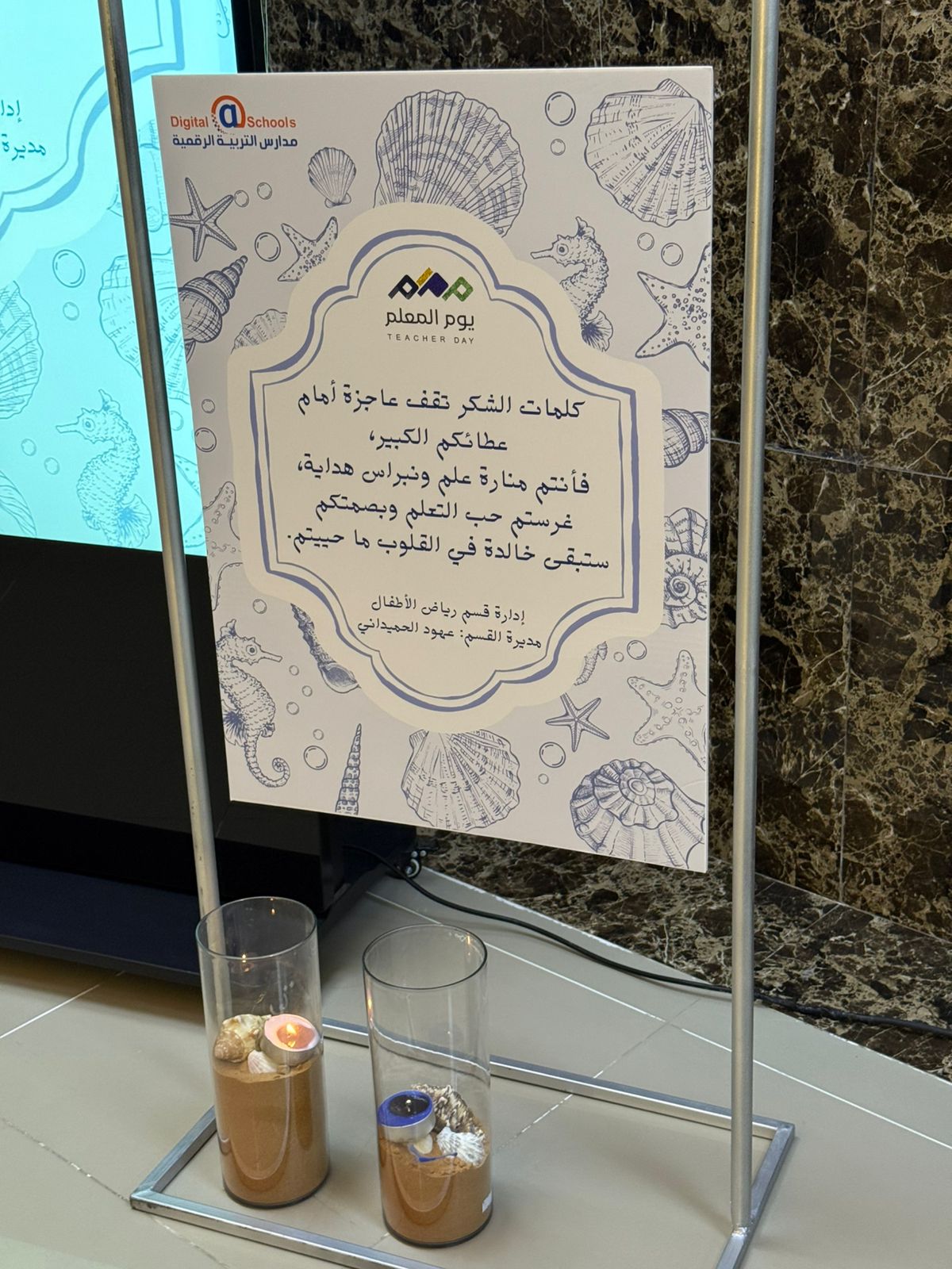 احتفلت مدارس التربية الرقمية قسم رياض الأطفال يوم الأحد الموافق 13 / 4 / 1447 هـ بيوم المعلم..