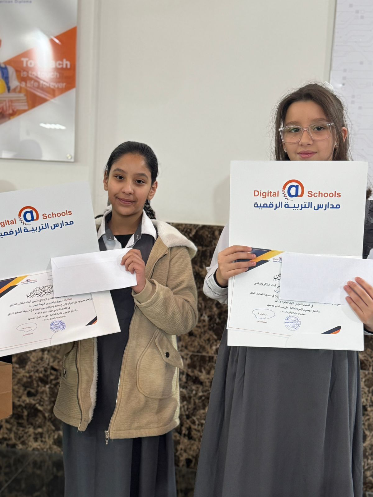 تكريم طالبات ابتدائي بنات بمدارس التربية الرقمية في مسابقة القارئ الماهر