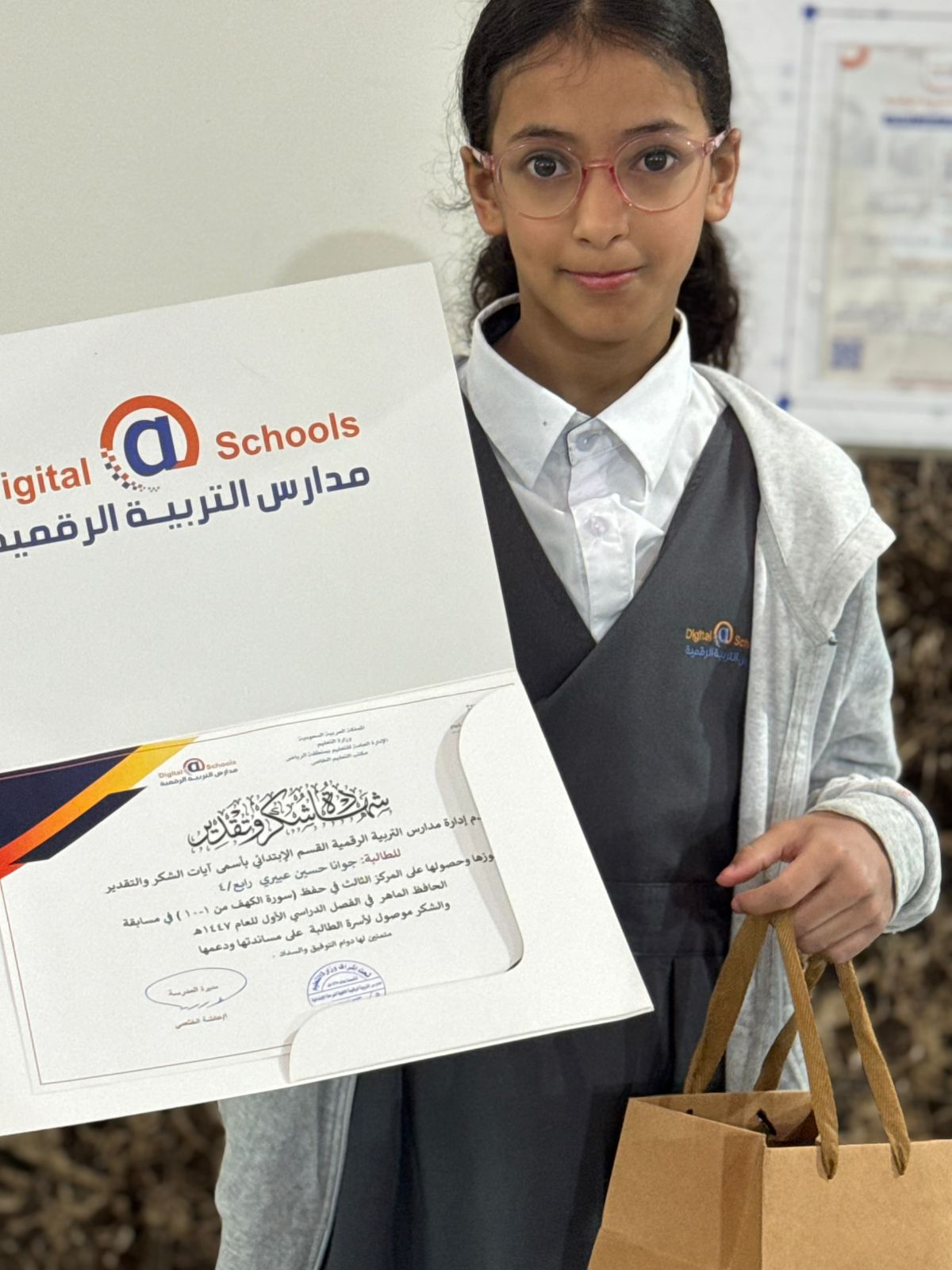 كرّمت مدارس_التربية_الرقمية قسم الابتدائــي بنات الطالبات المشاركات في مسابقة القارى الماهـر ، تقديرًا لجهودهنّ المباركة، وتشجيعًا لتميزهنّ في حفظ وتلاوة كتاب الله الكريم.