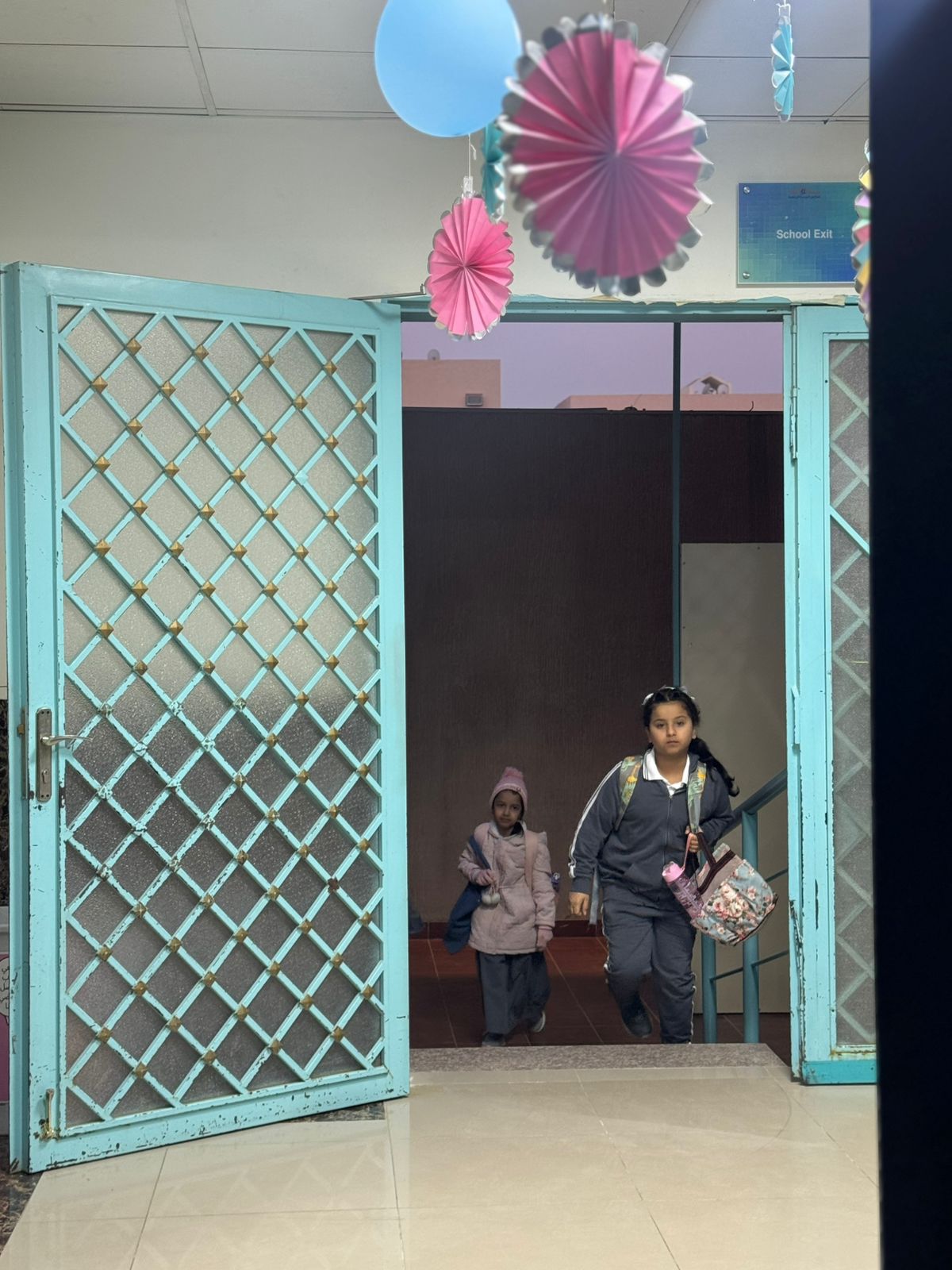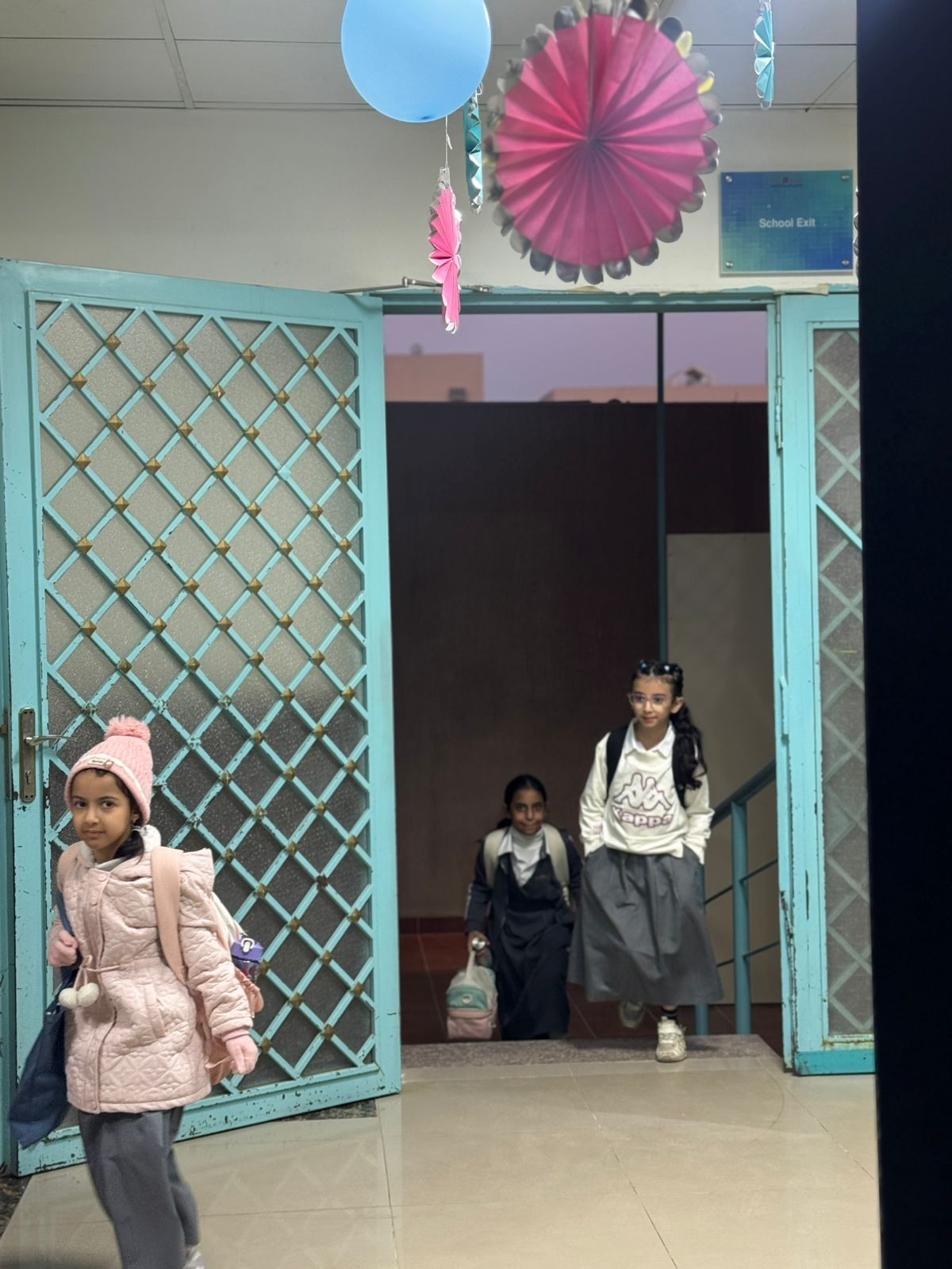استقبال طالبات القسم الابتدائي مع انطلاقة يوم الأحد بكل حماس