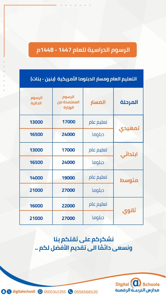 تأسست مدارس التربية الرقمية عام 1436 هـ و هى من أكبر المدارس الأهلية بغرب الرياض أكتسبت المدارس ثقة أولياء امور الطلاب والطالبات من خلال أداء المدارس المتميز