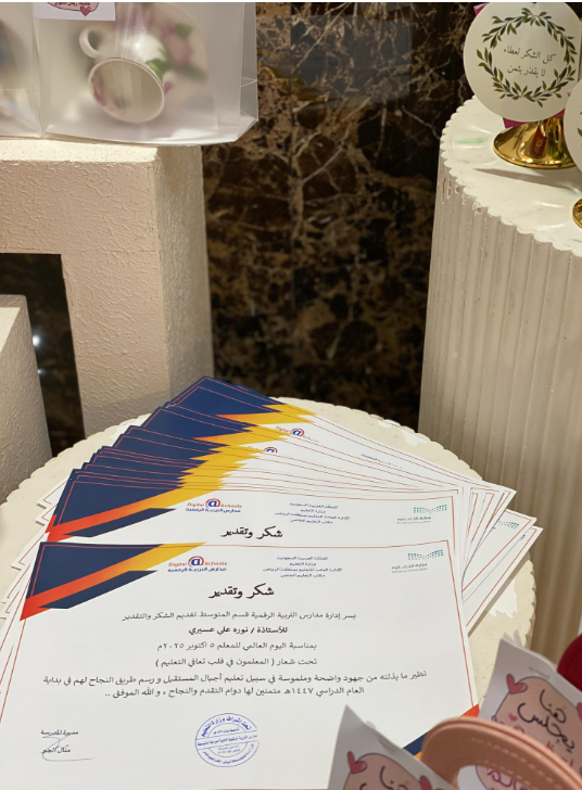 مدارس التربية الرقمية – قسم المتوسط بنات – تحتفل بيوم المعلم تقديرًا لعطائهم ورسالتهم النبيلة